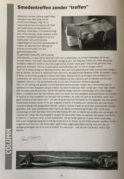 The Ambachtelijke smedersgilde (ASG) from Belgium had an article about the Jungschmiedetreffen in their Magazine "De Klinknagel" too. Thank you for this and for the awesome contributions from Belgium. You can find more information about the ASG on their website https://smedersgilde.be.